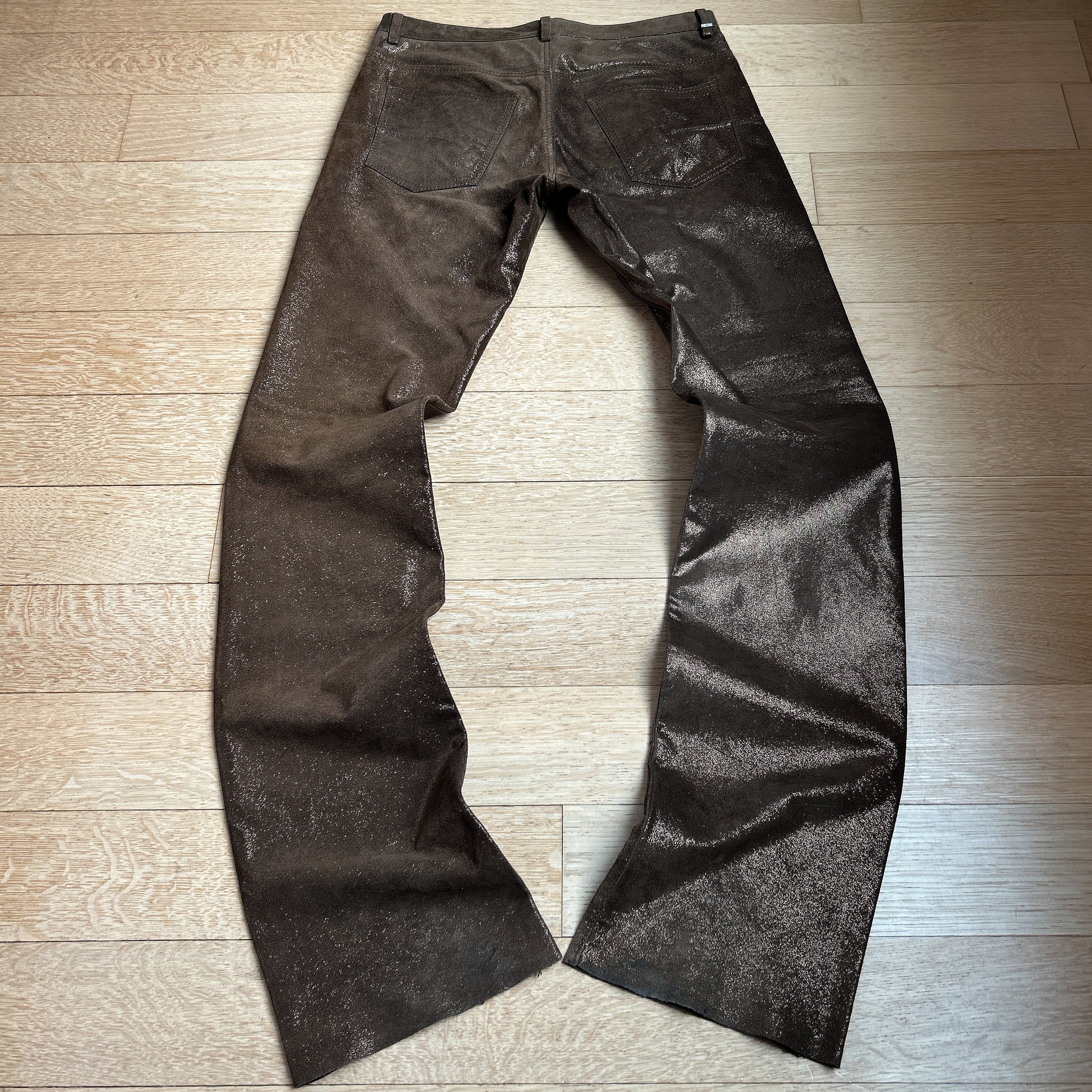 AW05 Dior Homme by Hedi Slimane Gold Glitter Suede Pants
